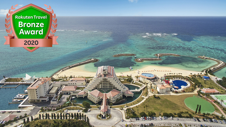 実際の宿泊者の評価:口コミ748件・評価4.58・環境省おすみつきビーチ・白亜のピラミッド型ホテル・豊富なアクティビティ・沖縄県恩納村