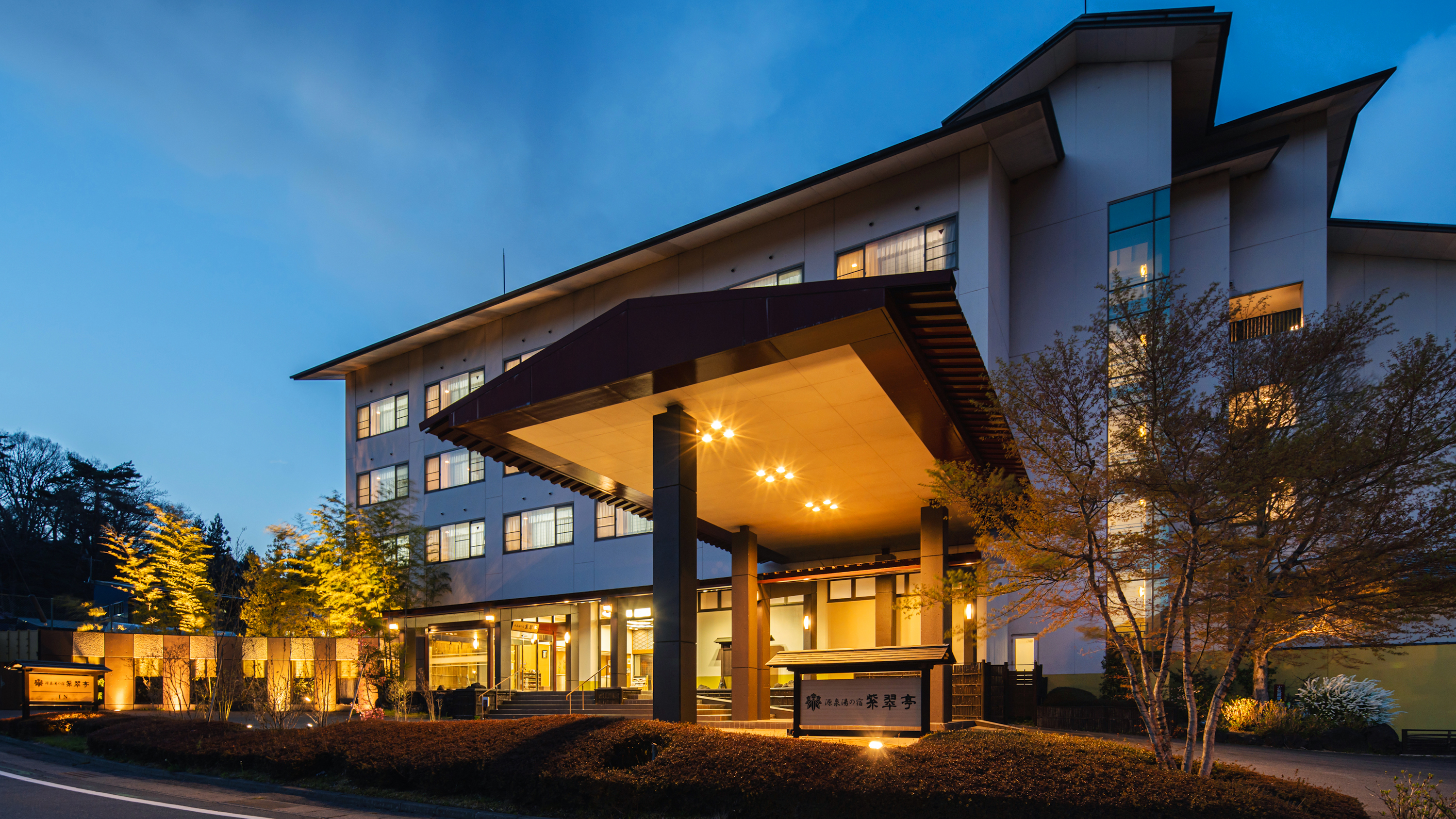 老神温泉 源泉湯の宿 紫翠亭は、豊かな自然に囲まれた静かな環境に佇む、落ち着いた雰囲気の宿です。