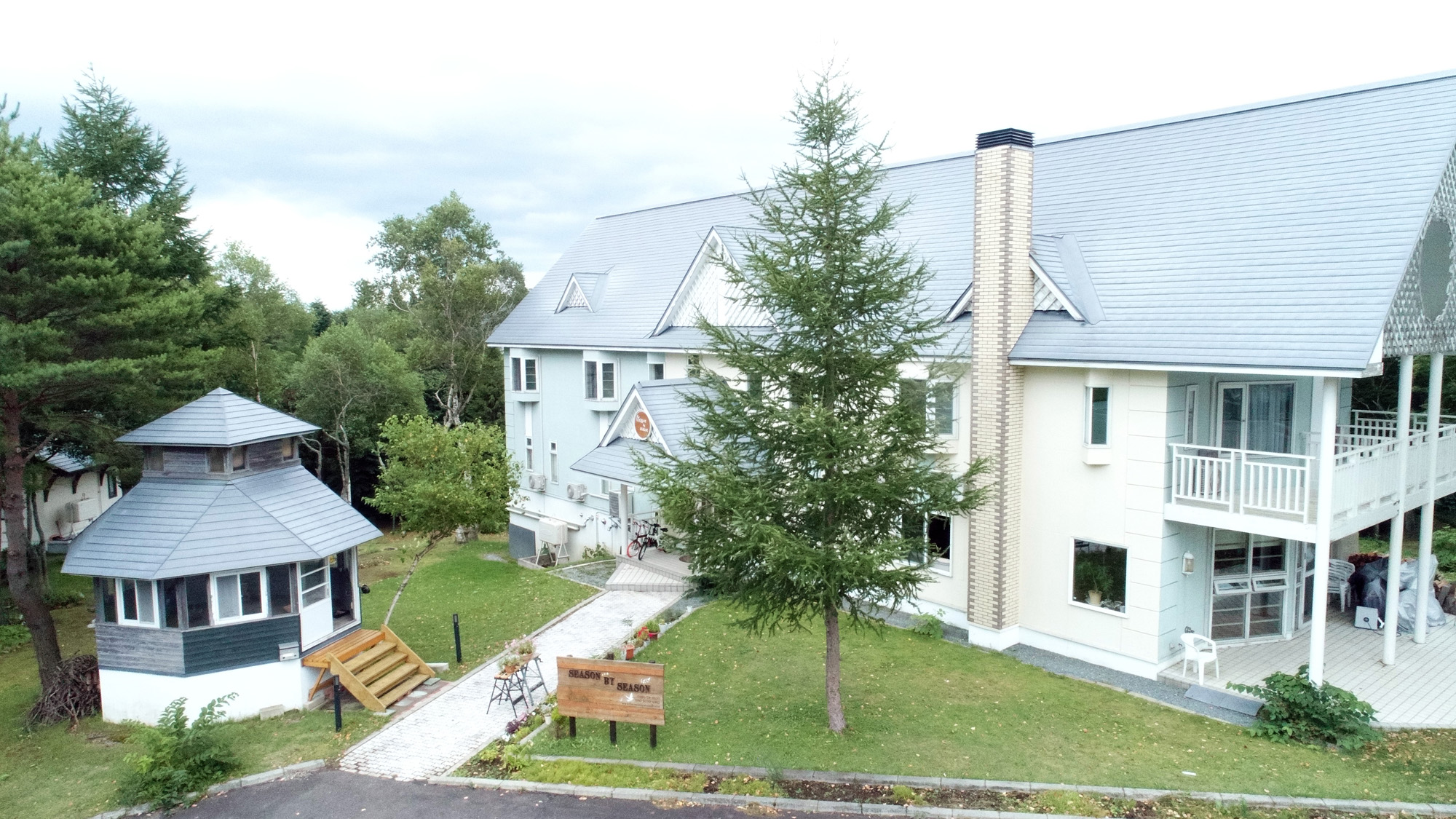 安比ペンション SEASON BY SEASONは、八幡平国立公園に隣接する安比高原に位置し、豊かな自然に囲まれたペンションです。木造建築で、温かみのある落ち着いた雰囲気が特徴。