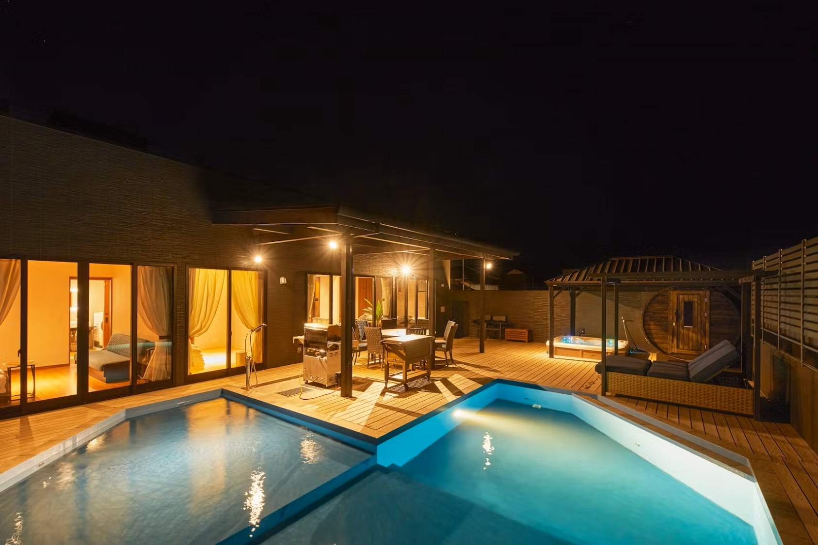 プライベートなプールとサウナを備え、他のお客様を気にすることなく、ゆったりと過ごせるのが魅力です。