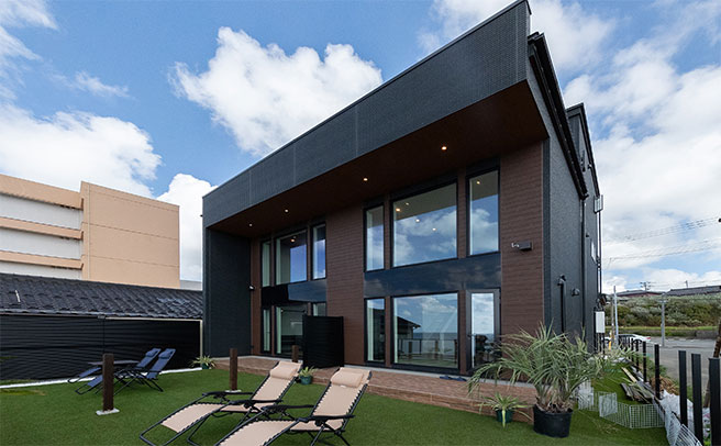 「たびの邸宅 Y-beach」は、その名の通り、まるで邸宅のような落ち着いた雰囲気の宿泊施設です。海までわずか6歩というロケーションは、まさに圧巻。