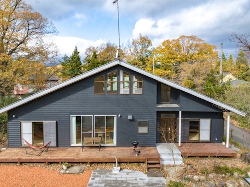 那須中心地の一棟貸モダンハウス、テディベア美術館まで徒歩5分 ^は、洗練されたデザインが特徴のモダンな一棟貸しハウスです。