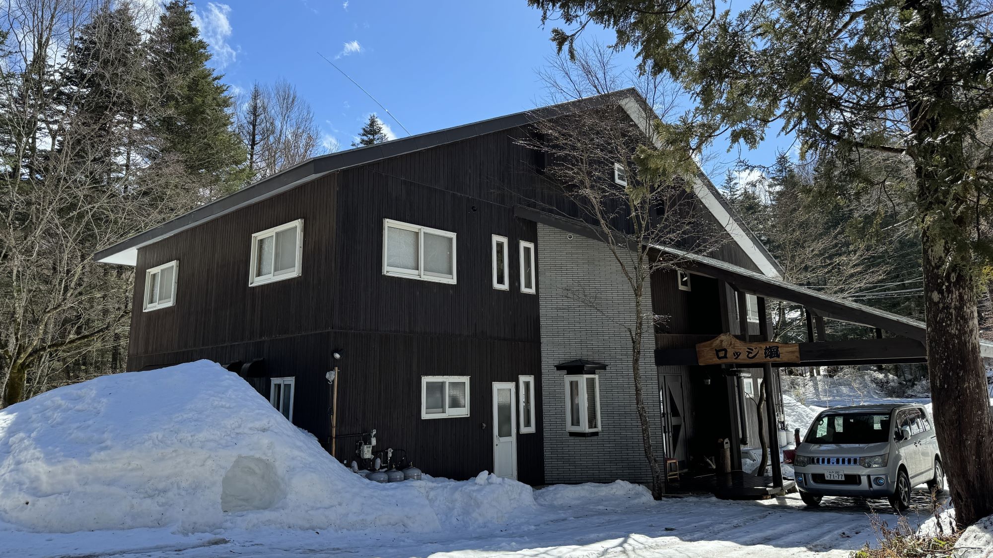 ロッジ颯は、丸沼高原の自然に囲まれた、落ち着いた雰囲気の宿です。