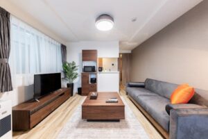 各部屋には必要なアメニティが揃っており、長期滞在にも対応できます。