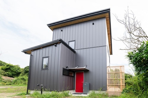 富津オフグリッドハウス ^は、千葉県富津市の海の目の前に位置する、ユニークな宿泊施設です。