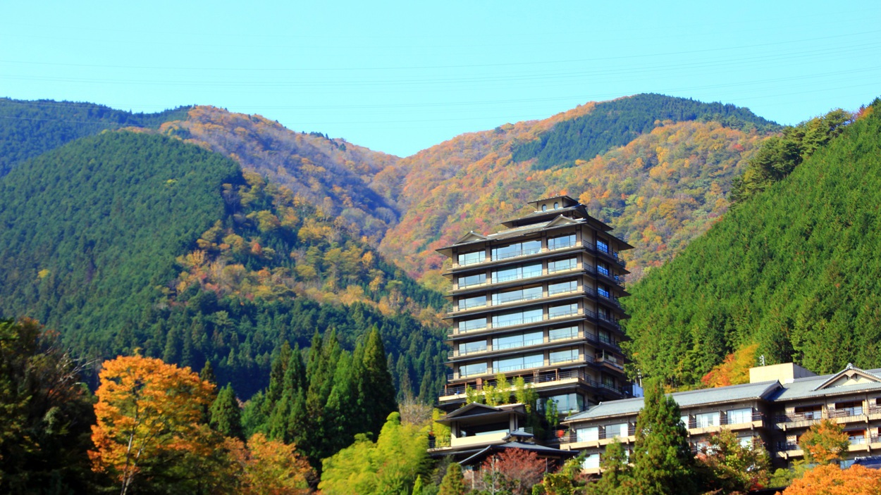 下呂温泉街を一望する高台に建つ静かな宿で、全室が二間以上のゆとりある造りになっています。