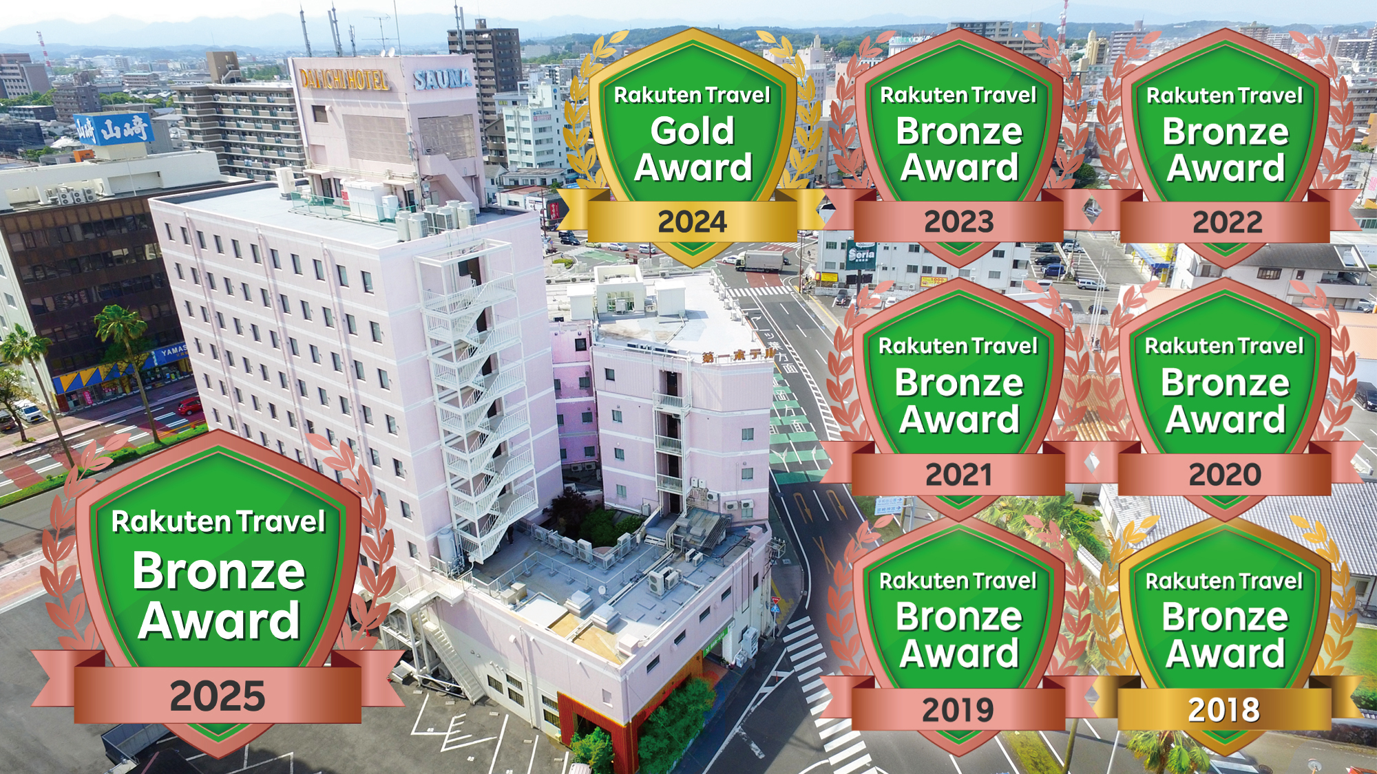 最安料金の目安3,500円は宮崎エリアのホテルとして手頃な価格帯で、楽天トラベルブロンズアワード受賞という評価実績も選びやすさの根拠になります。